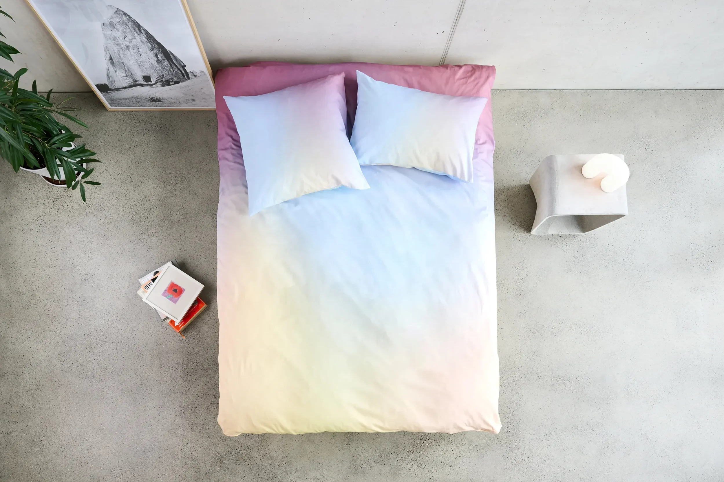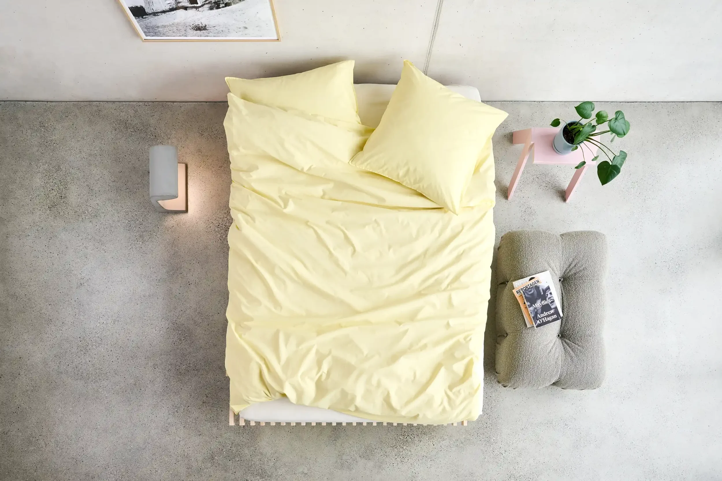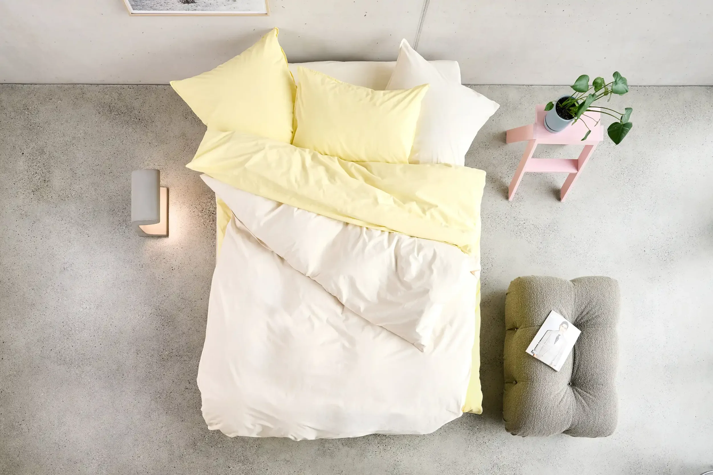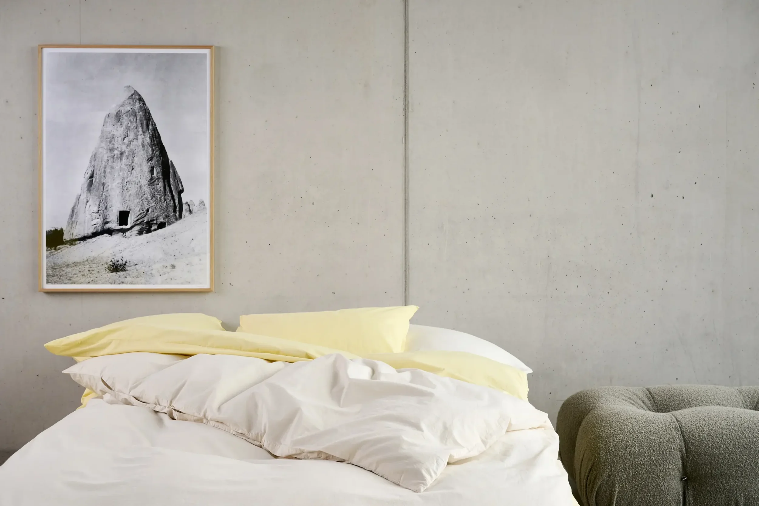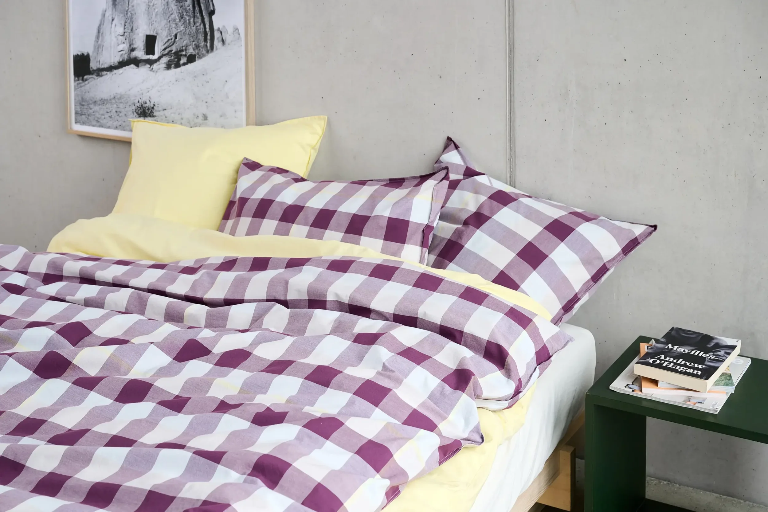 Für die Herbstkollektion 2025 von Lavie hat zambon&stahl das Farbkonzept und zwei darauf abgestimmte Dessins entwickelt. Das Karomuster Lyn und der sanfte Farbverlauf Ida harmonieren beide mit dem herbstlichen Uni-Ton Lemonade. Ida setzt auf weiche Übergänge in sky/plum und bringt eine leichte, ruhige Stimmung ins Schlafzimmer, ohne kühl zu wirken. Lyn bildet dazu den strukturierten Gegenpol. Das Karomuster ist ein Garnfärber und entsteht durch das Verweben unterschiedlich gefärbter Garne, was dem Stoff eine natürliche Tiefe und vielseitige Textur verleiht. Gemeinsam ergeben Ida, Lyn und Lemonade eine stimmige Herbstkollektion mit zurückhaltender Farbigkeit und feinen Details.